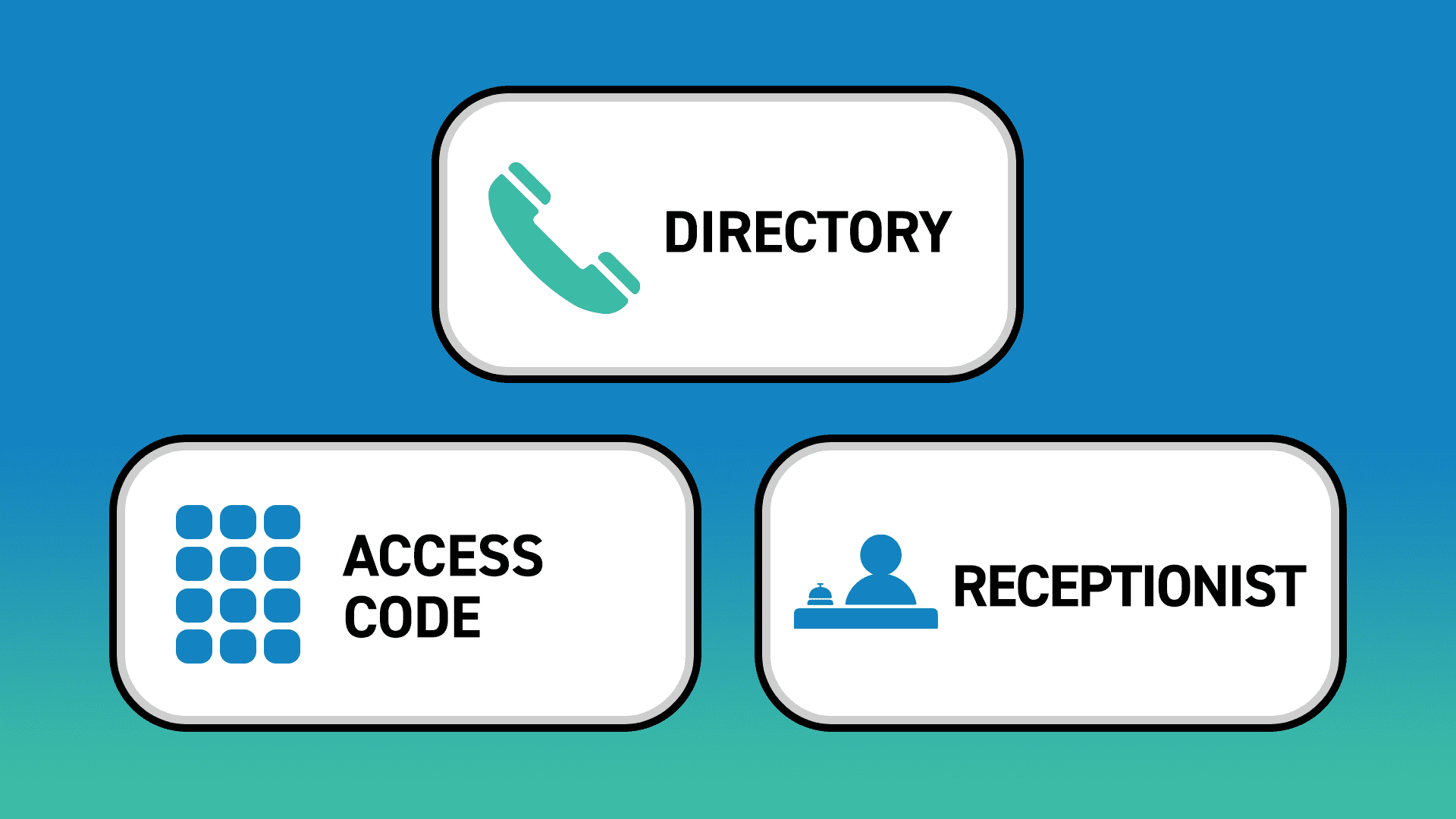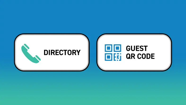 Three standard/default icons to choose from on a Watchman® multi-family access control system home screen: Directory, Access Code and Guest QR Code.